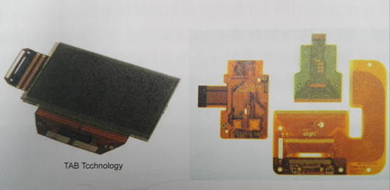 為了能進行組裝并搭配顯示器、特殊裝置連接,業(yè)者發(fā)展出特殊組裝結(jié)構(gòu)。比較早的結(jié)構(gòu)采用卷帶自動結(jié)合技術(shù)(TAB-Tape Automation Bonding)進行晶片組裝,之后為了能提升結(jié)合密度而改用FPC覆晶組裝(COF-Chip on Fiex)做晶片結(jié)合。這兩類典型FPC產(chǎn)品,如圖所示: