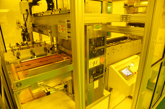 當(dāng)然,另外這位小伙伴的作用也不容小覷。它的名字叫片對卷雙面水潤壓膜機(jī),顧名思義,就是將卷狀的膜壓在FPC基板上。相較于以前的手工片狀貼膜,卷狀的壓膜不需要使用刀片割除板邊多余的干膜,產(chǎn)品品質(zhì)也更好了。同時(shí),也減少了對人工的需求。最重要的,效率妥妥提升了3倍喔~
