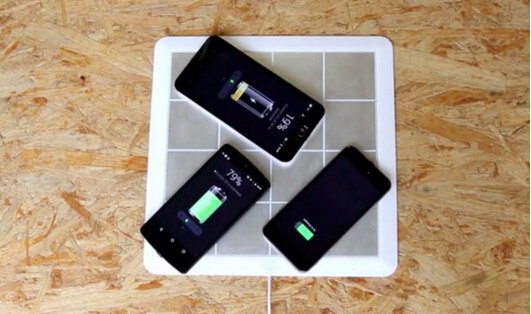 和感應(yīng)式充電器相比,它的充電速度更快,而且你可以把多個(gè)設(shè)備同時(shí)放在充電板上充電。只要貼紙的兩端分屬不同的金屬方塊,你的手機(jī)就會(huì)開始充電。