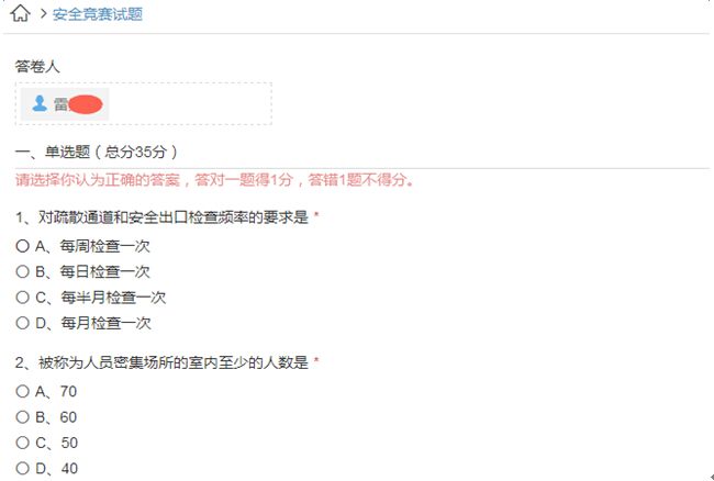 我相信再怎么難的題也難不倒學霸的你,再說了,咱們這是開卷考試,只是為了更好的普及安全知識,沒規(guī)定你不能問“度娘”??!當然,對于個別有針對性的問題,還是需要你對車間現(xiàn)場有一定了解才能回答。比如“公司的安全通道有幾條?”,這完全是送分題啊。