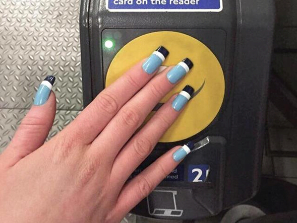 這位英國的珠寶設計師,把公交預付卡中的RFID芯片放進了丙烯酸材質的人工指甲當中,佩戴者只要把手指靠近讀卡器就能快速刷卡上車。這樣一來,你就再也不必擔心公交卡忘帶或是弄丟了。