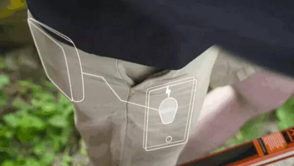 其原理是這樣的,它將支持Qi標(biāo)準(zhǔn)的無(wú)線充電電池組內(nèi)置在口袋內(nèi),之后通過(guò)隱藏在衣服中的線纜將電流輸送到衣服各個(gè)部分的無(wú)線充電點(diǎn)。