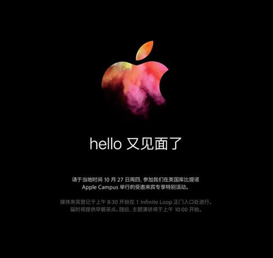 這次邀請函的主題是“hello 又見面了”,并且用濃墨重彩修飾了蘋果logo,每次蘋果邀請函都暗藏玄機,而“又見面了”至少暗示了舊產品的革新,與之前的傳聞多少有點關聯。