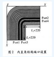 首先建立FPC圓弧拐角的結(jié)構(gòu)模型,為了更好地分析拐角結(jié)構(gòu)對(duì)信號(hào)傳輸?shù)挠绊?,將拐角處一段結(jié)構(gòu)不同的兩條傳輸線單獨(dú)提取出來,如圖2所示。