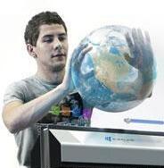 其結(jié)合了LCD平面顯示幕以及力傳感器和前后移動屏幕的機械臂,通過控制對用戶指尖的阻力,在屏幕上模擬出物體的形狀和重量,并通過調(diào)整屏幕的位置來匹配虛擬物體的輪廓,讓人感覺到物體的形狀,然后,計算機會調(diào)整屏幕上圖像的大小和角度,形成3D效果,用戶通過特殊眼鏡來獲得立體視覺效果。