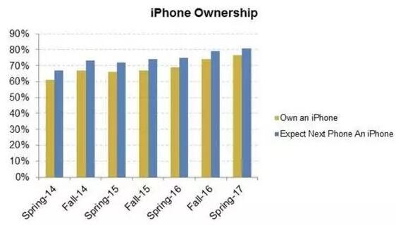 研究顯示,有76%的年輕人渴望擁有一部iPhone手機,而接受調(diào)查的81%都明確表示,下一部手機會購買iPhone 8。