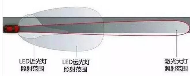 和LED相比,激光大燈所占體積更小,能耗更低,但是產(chǎn)生的光線強度比LED強很多,激光燈源擁有近乎LED遠(yuǎn)光燈兩倍的照射距離,照射范圍大大增加。