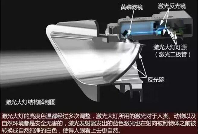 如果僅憑外觀,激光大燈和LED頭燈沒有什么區(qū)別,但在技術(shù)上兩者就有很大的差距了。無論是能耗、亮度還是照明距離,激光大燈都走在了前面。