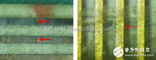 比較難的是從最末端的金手指可以量測到開/斷路,卻怎么也找不到銅箔斷裂的位置,找不到位置,就難以確認是什么原因引起的斷裂。