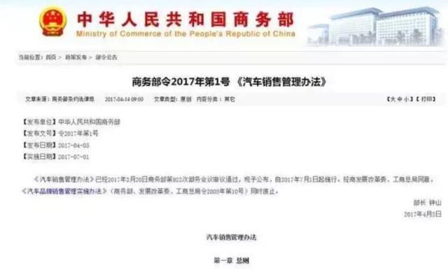 汽車FPC關(guān)注的汽車銷售管理辦法的更新