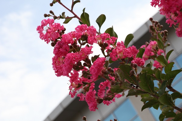 這就是紫薇花,并且就開在贛州深聯(lián)軟板廠的生活區(qū)里,在這盛夏酷暑時節(jié)。天熱得坦坦蕩蕩,我們的紫薇花卻是開得紅紅火火。上班路上,滿眼的姹紫嫣紅,讓火熱的夏天都被裝扮得繽紛浪漫起來,干勁也瞬間裝載滿滿。