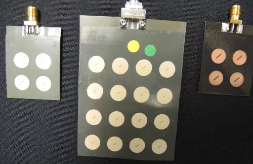 波音公司展示幾種類型的飛機印刷天線,如圖中所示的10GHz產(chǎn)品。波音和美國空軍都在實驗?zāi)苎b進飛機機翼的適形天線(conformal antenna)。