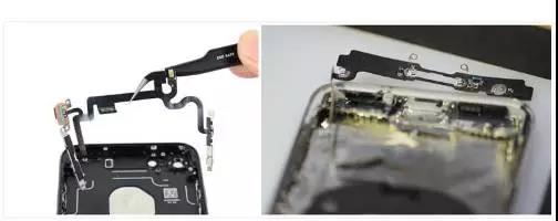 左:iPhone 7天線,右:采用柔性電路板的iPhone X天線