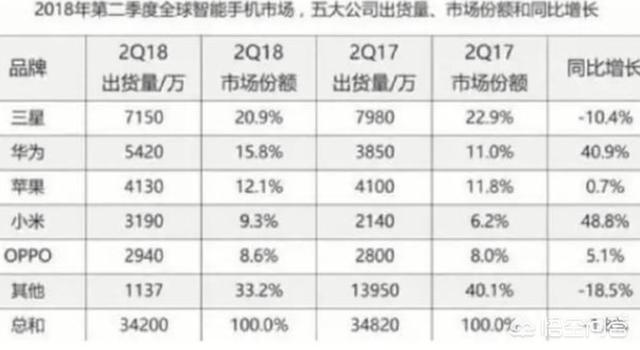 第一,從市場占有率來說,華為和蘋果有差距,但差距已經(jīng)很小。按照目前華為發(fā)展速度,短期超過蘋果不難。下面是手機(jī)在全球的出貨量,華為手機(jī)在今年的第二個季度已經(jīng)遠(yuǎn)遠(yuǎn)的超過了蘋果手機(jī),而在第三季度,雖然蘋果追上來了,但是兩者的差距還是很小的。
