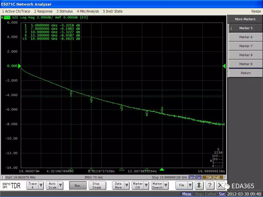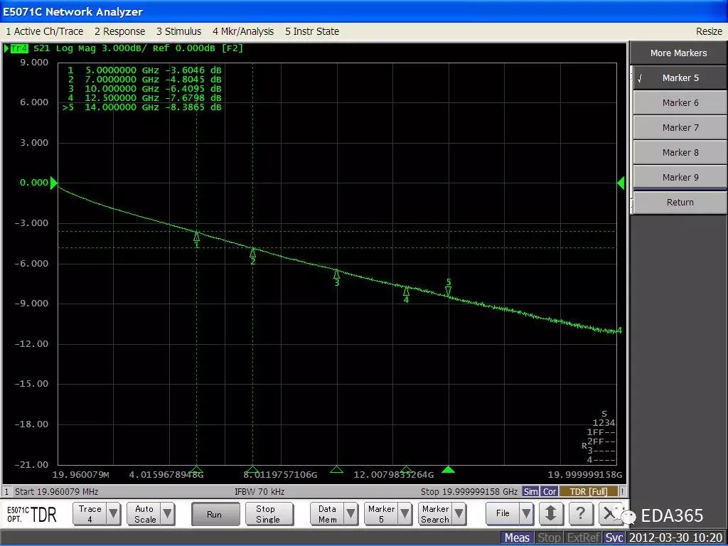 同樣線寬表面覆膜微帶線的S21好于不蓋膜情況,所以覆膜是必要的,同樣的問題,覆膜的材料等不一樣同樣的思考,也會帶來信號損耗的不一樣。這個結論和信號線走內層同樣的線寬損耗小很多一個道理。