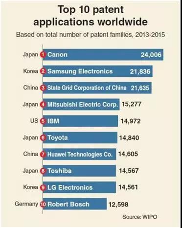 在世界知識(shí)產(chǎn)權(quán)組織發(fā)布的專利報(bào)告中,華為以14605個(gè)專利排名全球第七。