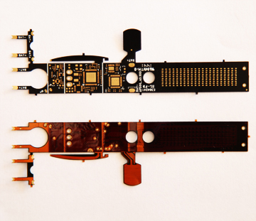 型 號:RM01C00187A層 數(shù):1板 厚:0.12mm材 料:單面有膠電解銅 厚:1/2 OZ表面處理:沉金2微英寸最小線寬/線距:0.1mm/0.08mm特 點:外形復(fù)雜