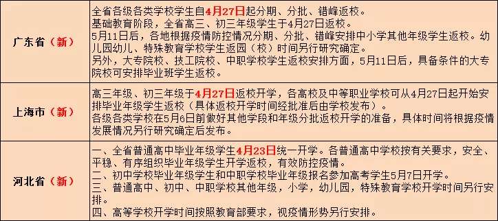 4月7日,黑龍江、吉林、河南、福建等9地的高三學(xué)生恢復(fù)開學(xué),部分省區(qū)市的初三年級和其他學(xué)段開學(xué)時間也已出爐。