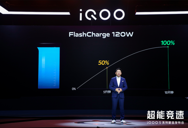 MWC 2019上,vivo 120W 超快閃充亮相——4000mAh電池只需5分鐘充至50%,13分鐘可充滿。2020年8月,搭載 120W 超快閃充的iQOO 5已經(jīng)正式量產(chǎn)。