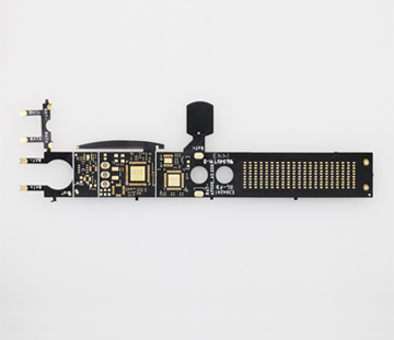 型 號:RM01C00187A層 數(shù):1板 厚:0.12mm材 料:單面有膠電解銅 厚:1/2 OZ表面處理:沉金2微英寸最小線寬/線距:0.1mm/0.08mm特 點:外形復雜