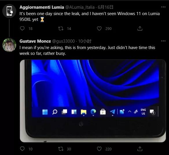 現(xiàn)在,其中一位開(kāi)發(fā)人員在Lumia 950 XL上成功運(yùn)行了Windows 11系統(tǒng),Gustave Monce在Twitter上向我們分享了這一喜訊,并表示他還在努力適配更多內(nèi)容。