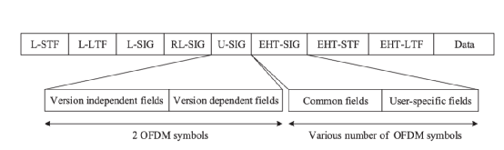 新一代Wi-Fi標(biāo)準(zhǔn)的設(shè)備通過前代標(biāo)準(zhǔn)的前導(dǎo)碼中解碼信息,也就是L-SIG。而Wi-Fi 7引入了一個(gè)U-SIG通用前導(dǎo)碼,只需對其進(jìn)行填充,改變版本號、UL/DL等參數(shù),就可以保證兼容Wi-Fi 7以后的標(biāo)準(zhǔn)。