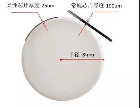 柔性芯片,顧名思義對標的就是它的前身“剛性芯片”。通過減薄工藝將芯片變薄變柔,變身為一顆柔軟的芯。和傳統(tǒng)芯片相比,柔性芯片的柔度提升了8000倍,厚度只有人體頭發(fā)絲的1/4!