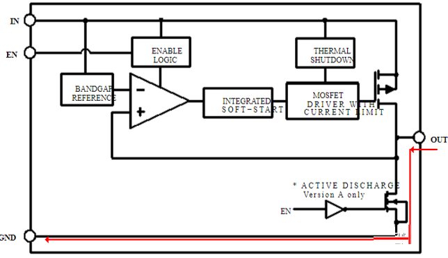 據(jù)柔性線路板小編了解,該LDO的快放電功能受控于EN引腳,當EN引腳為高時,LDO輸出Vout,當EN引腳為低電平時,LDO關閉輸出,快放電通路打開,負載電容上的電壓通過放電MOS被釋放,放電通路見下圖紅色路徑。