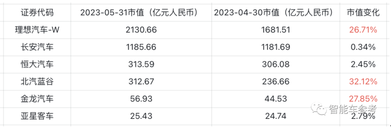 股價(jià)有增有減,隨之而來的是車企市值的變動(dòng)。