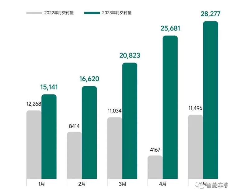 截止到2023年5月31日,理想汽車?yán)塾?jì)交付量為363876輛。作為對(duì)比,同樣是截止到今年5月底,蔚來累計(jì)交付333410輛,小鵬累計(jì)交付291525輛。