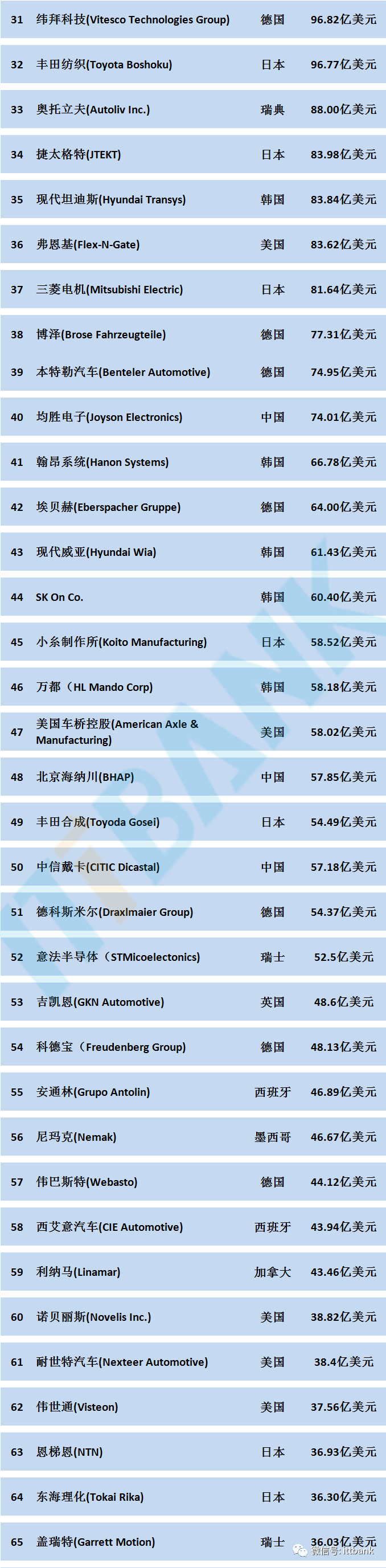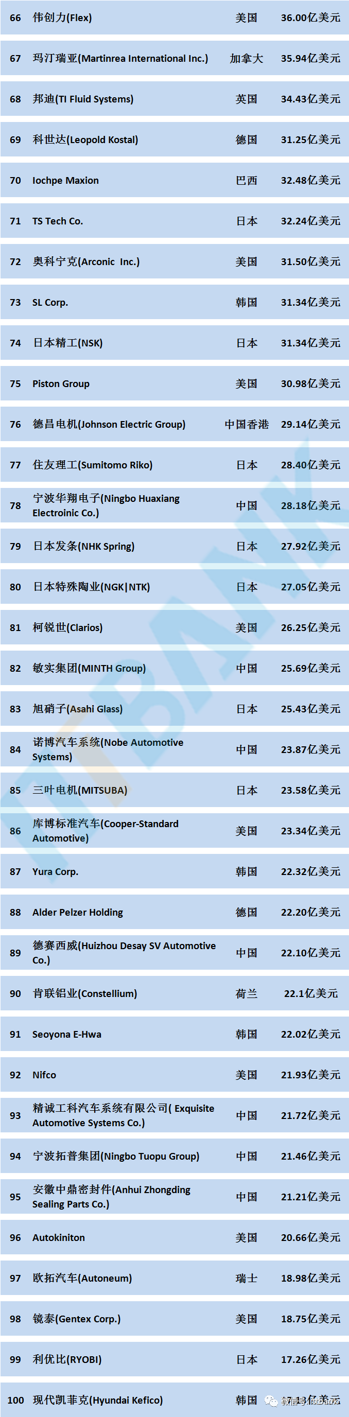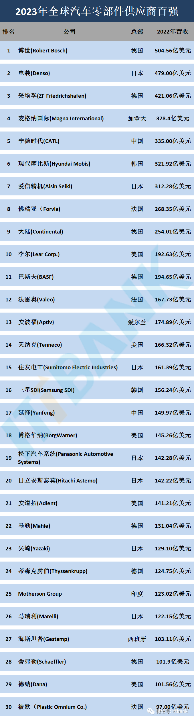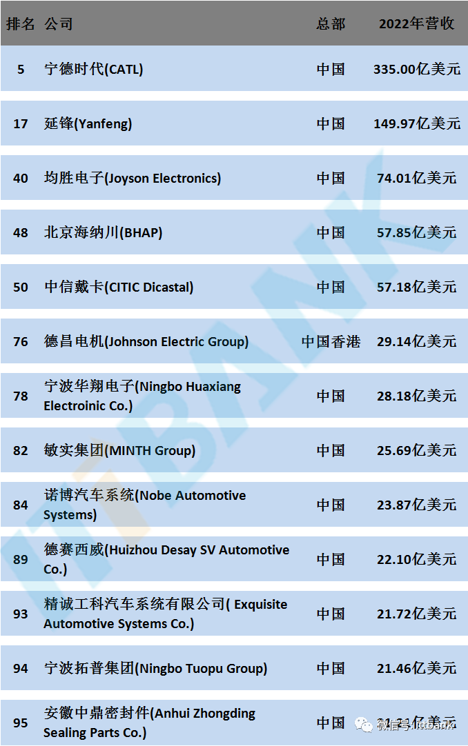 電池FPC廠了解到,2023年全球汽車零部件供應(yīng)商百?gòu)?qiáng)中國(guó)上榜企業(yè)排名如下:
