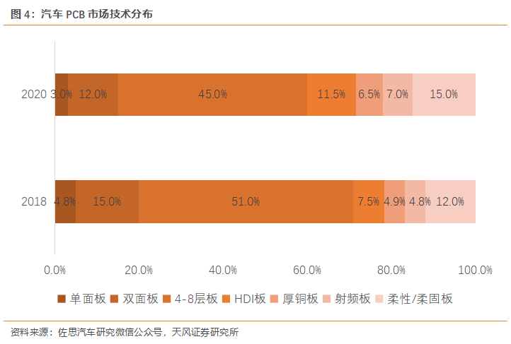 汽車軟板廠了解到,新四化下,汽車電子整車占比持續(xù)提升,汽車電子應(yīng)用中PCB為重要底座支撐,提升汽車PCB的應(yīng)用需求。