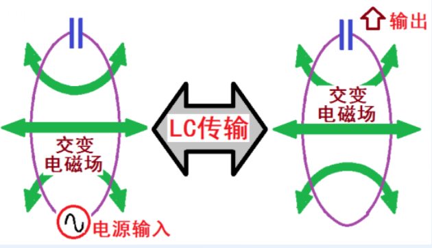 圖中的能量以磁場形式進行無線傳輸,相當于一個隔離變壓器實現(xiàn)了無線充電,形成電源發(fā)送端和能量接收端。