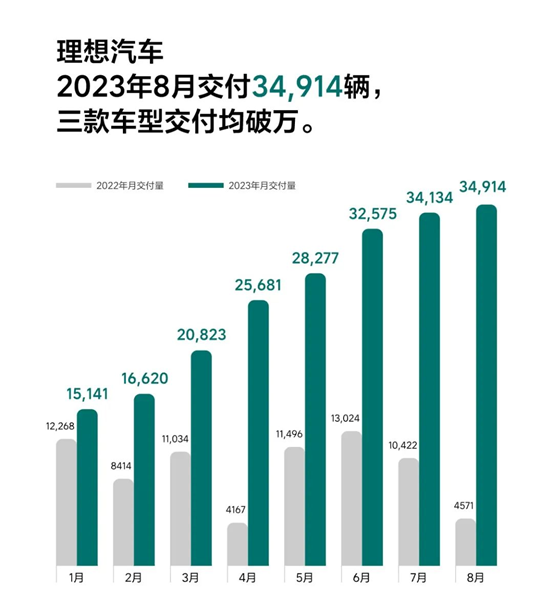 新勢(shì)力中的理想汽車穩(wěn)步提升,月銷攀升到3.49萬輛。根據(jù)理想汽車的預(yù)估,今年有希望突破單月4萬輛的銷售大關(guān)。理想一共推出3款車,分別是L7、L8、L9。這三款車沒有形成內(nèi)耗式的自卷,而是全部月銷破萬,訂單高度均衡。