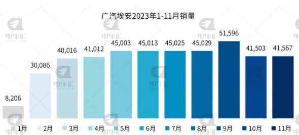 廣汽埃安11月銷量41,567輛,同比增長45%,環(huán)比上月增加了64輛。1-11月累計銷量434,056輛,同比增長80%。昊鉑HT上市半月交付近2,000輛。