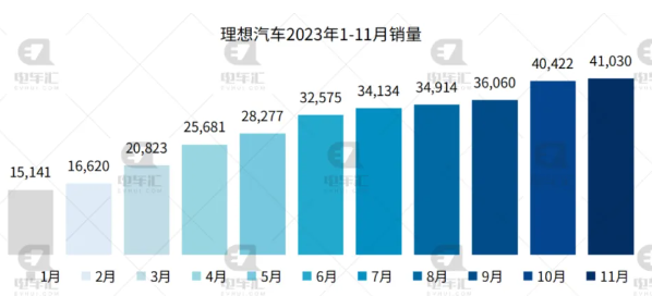 理想汽車11月交付新車41,030輛,同比增長172.9%,環(huán)比增長2%。截至2023年11月30日,理想汽車全年累計交付325,677輛,提前達成2023年30萬輛銷量目標(biāo)。