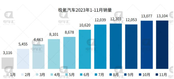 極氪汽車11月交付新車13,104輛,同比增長19%,環(huán)比上月增加了27輛。截止11月末,極氪汽車今年累計交付新車105,209輛。到目前為止,極氪汽車?yán)塾嫿桓遁v為18萬輛。