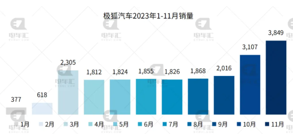 極狐汽車11月交付新車3,849輛,環(huán)比增長24%。今年1-11月,極狐汽車?yán)塾嬩N量21,457輛。
