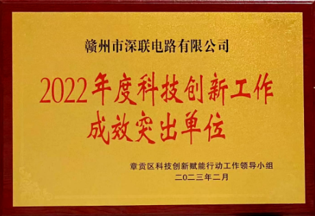 再傳喜訊!深聯(lián)電路榮獲2022年度章貢區(qū)科技創(chuàng)新工作成效突出單位稱號!
