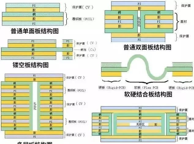 有膠基材主要有三部分組成:銅箔、膠、和PI,有單面基材和雙面基材兩種類別,只有一面銅箔的材料為單面基材,有兩面銅箔的材料為雙面基材。