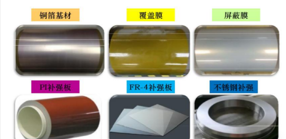 其主要原材料有:1、基材,2、覆蓋膜, 3、補強, 4、其它輔助材料。