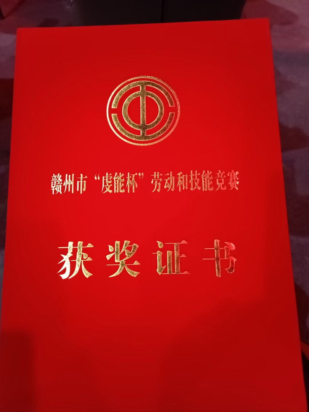 維修部李敏以優(yōu)越成績獲得2024年贛州市“虔能杯”電子電工技能大賽二等獎;贛州市總工會“個人勞動模范稱號”表彰。