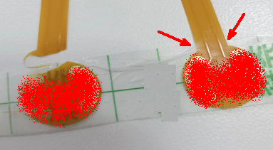 (8)補(bǔ)強(qiáng)寬度:FR4補(bǔ)強(qiáng)寬度太小,很容易斷裂及碳化,建議最小寬度小于5mm的改為PI或鋼片補(bǔ)強(qiáng) 。背膠最小寬度也要有3mm以上。(9)貼片焊盤周圍不能有補(bǔ)強(qiáng)或背膠,會(huì)導(dǎo)致無法絲印錫膏(如果一定要,需要先貼片再貼補(bǔ)強(qiáng)或背膠)
