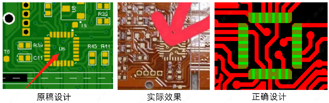 (2)IC中間需要有橋連才能保留中間的阻焊