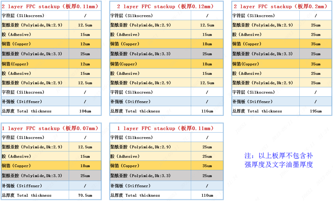 8. 板厚說明 板厚是包含覆蓋膜、銅厚,和板材PI厚度的,如果板上有無銅區(qū)或沒有覆蓋膜,板厚會(huì)相應(yīng)減薄,請(qǐng)?jiān)O(shè)計(jì)時(shí)特別留意
